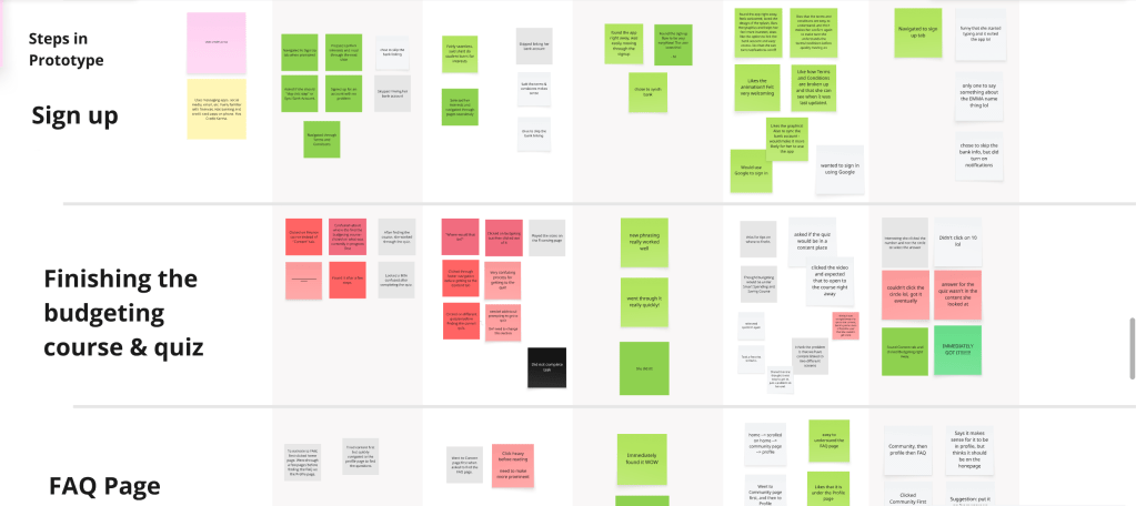 We weren’t testing our prototype for validation, but rather for discovery. Our testers loved a lot of aspects of WalletWize, but seeing the confusion around the Budgeting topic and the FAQ gave us our areas for improvement. It was nice to see both the strengths and the pain points played out. This phase reminded up that good design comes from real world tests and improvements made with empathy.