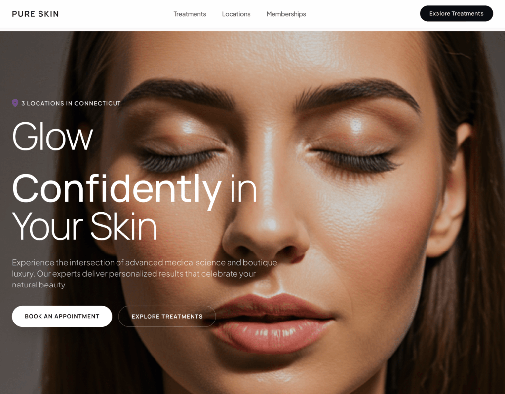 - The design style I wanted for the page: Design a modern, clean, and aesthetic homepage for a medical spa brand called Pure Skin Med Spa. The design should feel elevated, feminine, and trustworthy, with a strong focus on skincare results and wellness. Clean spacing, soft shadows, subtle gradients, rounded edges, and minimal clutter.